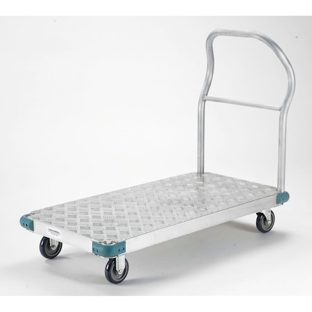 Platform Truck w/Steel Deck, 6 Rubber Casters with Ergo Handle, 48 x 30, 2000 Lb. Capacity