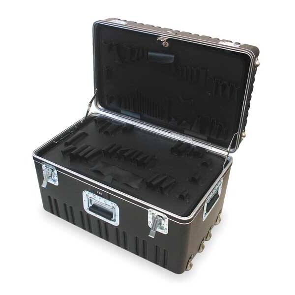 Protective Case, Bottom Depth 10 in, Closure Type TSA Combo Lock, Color Black, Electrostatic Discharge No, Handle Style Recessed, Telescoping, Includes Foam Insert No, Inside Depth 13 in, Inside Length 26 in, Inside Width 16 in, Lid Depth 3 in, Material Plastic, Maximum Operating Temperature 125 Degrees F, Minimum Operating Temperature -50 Degrees F, Number of Latches 2, Number of Wheels 2, Overall Depth 15 1/4 in, Overall Length 27 1/4 in, Overall Width 17 in, Weight Capacity 28 lb