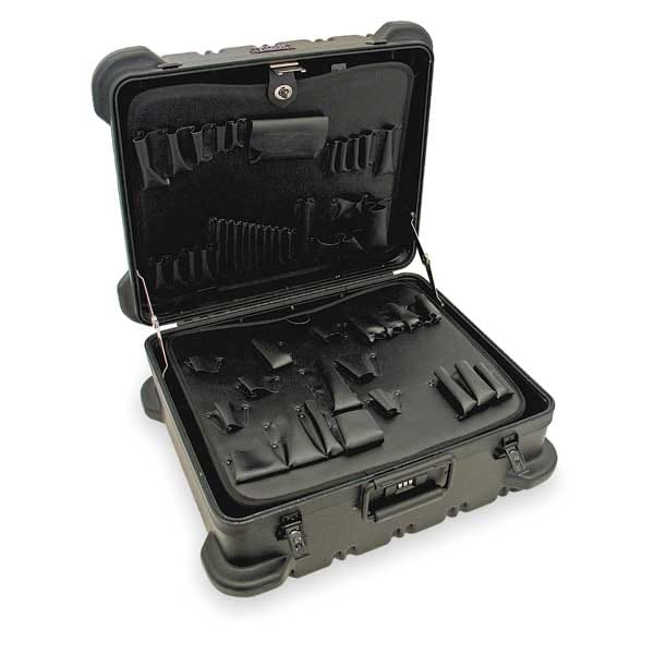 Protective Case, Bottom Depth 5 1/2 in, Closure Type Latches, TSA Combo Lock, Color Black, Electrostatic Discharge Not Electrostatic Discharge Conductive, Handle Style Folding, Includes Foam Insert Foam Insert Not Included, Inside Depth 9 in, Inside Length 17 1/2 in, Inside Width 14 1/2 in, Lid Depth 3 1/2 in, Material Plastic, Maximum Operating Temperature 125 Degrees F, Minimum Operating Temperature -50 Degrees F, Number of Latches 2, Number of Wheels 0, Overall Depth 9 3/4 in