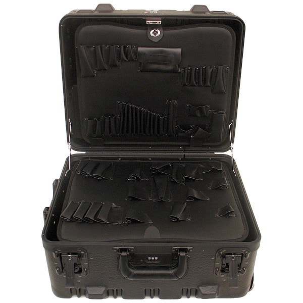 Protective Case, Bottom Depth 5 in, Closure Type TSA Combo Lock with Recessed Latches, Color Black, Electrostatic Discharge Not Electrostatic Discharge Conductive, Foam Design Not Applicable, Handle Style Telescoping, Includes Foam Insert Foam Insert Not Included, Inside Depth 9 in, Inside Length 17 1/2 in, Inside Width 14 5/8 in, Lid Depth 4 in, Material Plastic, Maximum Operating Temperature 125 Degrees F, Minimum Operating Temperature -50 Degrees F, Number of Latches 2, Number of Wheels 2