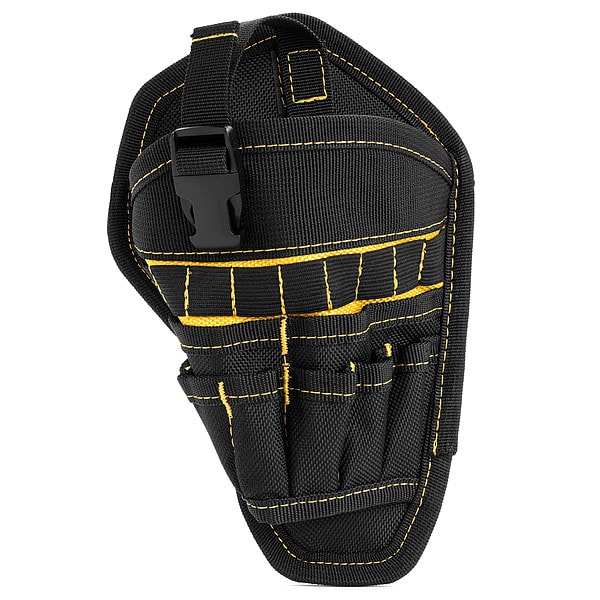 Tool Holster, Attachment Type Hook-and-Loop, Closure Type Open Top, Color Black/Yellow, Compatible with Manufacturer Model No. B120, B220, B320, Compatible with Product Type Backpack, Shoulder Bag, Tote, Features MOLLE Compatible, For Maximum Belt Width 3 in, Material Polyester, Number of Inside Pockets 0, Number of Outside Pockets 8, Number of Pockets 8, Overall Depth 3 in, Overall Height 9 1/4 in, Overall Width 6 in, Series Benchmark, Style Holster