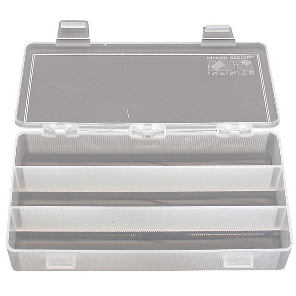 Container for Small Parts, Dividers are Moveable in 1/16" Increments Providing Flexibility in Organized Space. Resistant to Oil, Solvents, and Chemicals
