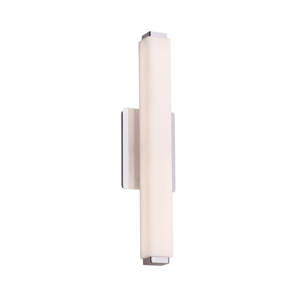 This stunning small LED vanity from the Prelude collection is an ideal addition to any bathroom or cloakroom and would be perfectly placed on top of a mirror to provide you with precision lighting. The fixture is made up of a matte opal square glass with stunning polished chrome accents and measures 5" in height and 20" across with an extension of 3" and is ADA compliant. Whatever your decor, this stunning and affordable vanity would grace any room.