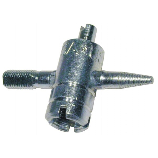 Repair tool The 4 function tool Cleans and rethreads internal and external thread of valve stem Inserts and removes valve cores with guide to fit over stemEasy-Out to remove damaged cores Plated to resist rust Carded Length: 0.75 Width: 3.88 Height: 2.88