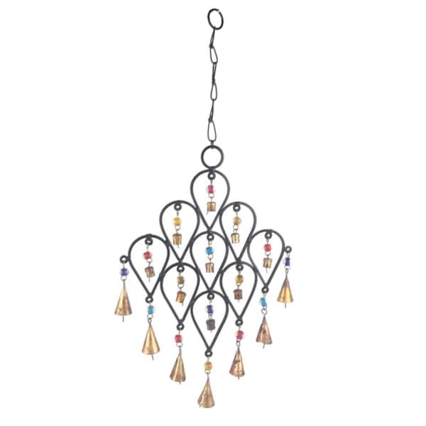 22 in. Inverted Drop Beaded Wrought Iron Wind Chime with Metal Bells
