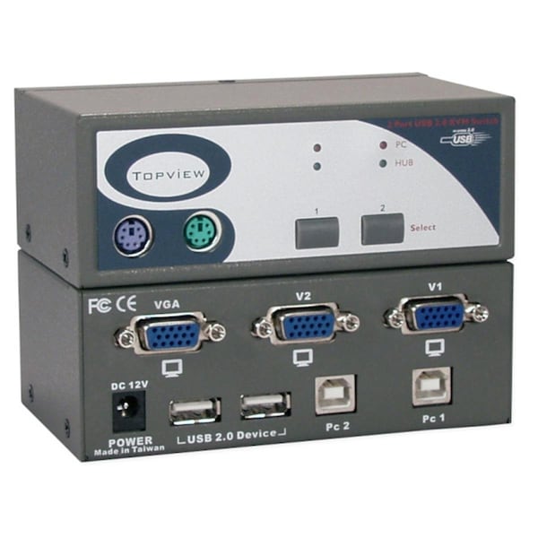 USB 2.0 2 Port KVM Desktop Switch with Built-in 2Port Hub