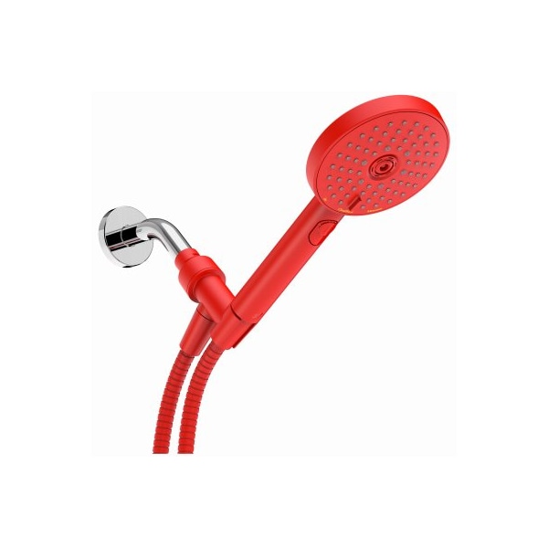 sproos 5 red handheld shower set that includes bracket, hose, rail, and pliers for installation Pause button, 3 spray functions, no fingerprint surface, and 70 premium hose