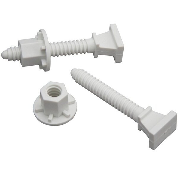 Two plastic closet bolts with open cap nuts.