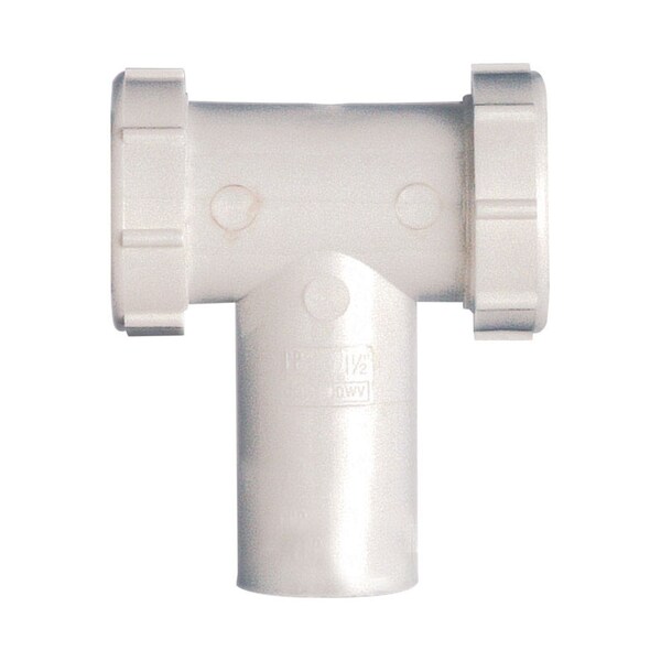 The center outlet tee and tailpiece is used in the kitchen sink waste. It's inlet and outlet is 1 1-2. It has a baffle which help with water flow. It also slip joint or direct connects to the sink. All nuts and washers are included. White polypropylene