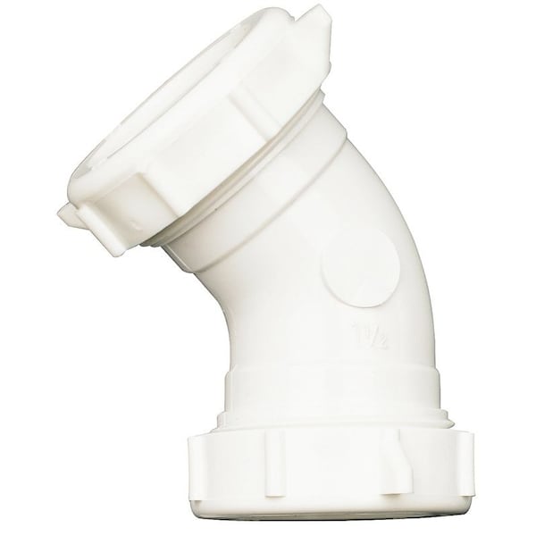 Plumb Pak Drain Pipe Elbow, Nominal Size: 1-1/2 in, Angle: 45 deg, PVC, White, Suitable for: Drainage System, Includes: Reducing Washer