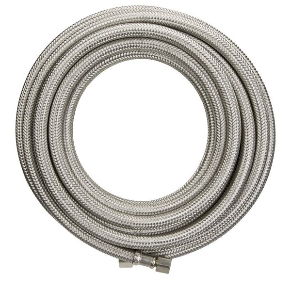 Plumb Pak Ice Maker Supply Line, Inlet Connection Size: 1/4 in, Inlet Connection Type: Compression, Outlet Connection Size: 1/4 in, Outlet Connection Type: Compression, Tubing Material: Stainless Steel, 240 in L
