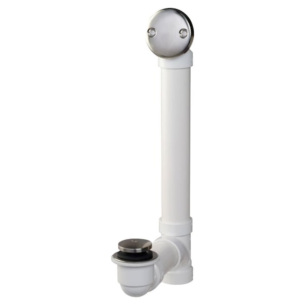 Foot Lok Stop Style Complete Sch. 40 PVC Bath Drain. Tarnish free brushed nickel exposed trim. 1 1/2in Sch. 40 pipe for solvent weld installation. Fits all standard size tubs. Includes all necessary hardware.