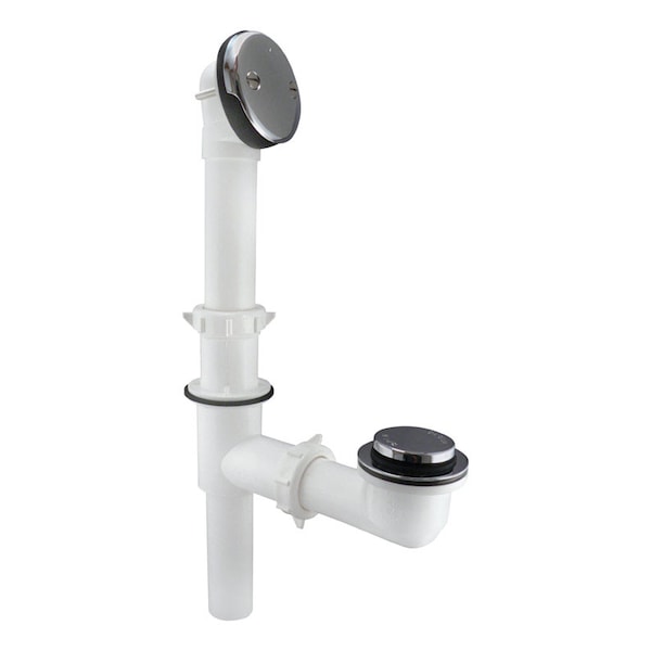 Foot Lock Stop Style complete polypropylene Triad bath drain. Configures into three different drains; direct, conventional, and back-outlet. Polished chrome exposed trim. Fits all standard size tubs. Includes everything necessary for the installation of one complete bath drain.