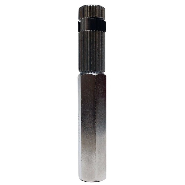 Nipple extractor for pipe nipples Camstyle design fits into pipe and extends as it is turned, gripping the pipe from the inside to install or remove Hex side allows tools a firm grip when using with wrenches