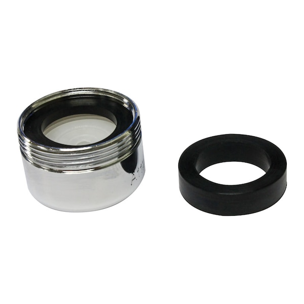 This Plumb Pak PP800-2 is a dual threaded faucet aerator with 27 - 15/16 in. outside threads and 27 - 55/64 in. inside threads. This Water Saver faucet aerator comes with a glossy chrome (plated) finish that doesn't wear off easily.