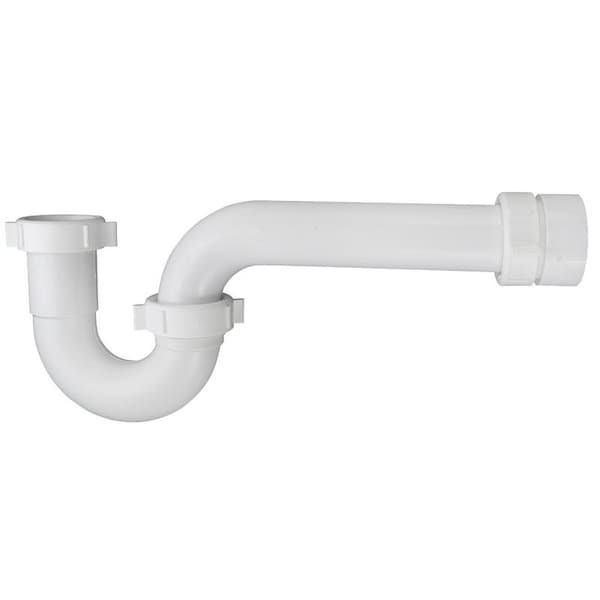 White polypropylene P- trap for kitchen. 1 1/2 in inlet and outlet. Includes marvel connector for connection to SCH.40 stub out. All necessary nuts and washers are included.