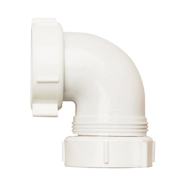 The 90 degree Outlet Elbow has an inlet of 1 1/2 in. and an outlet of 1 1/2 in. Pipe Thread. The outlet has a captured nut and will connect directly to pipe thread. This can be used with washing machine drain connections or J bend connections.