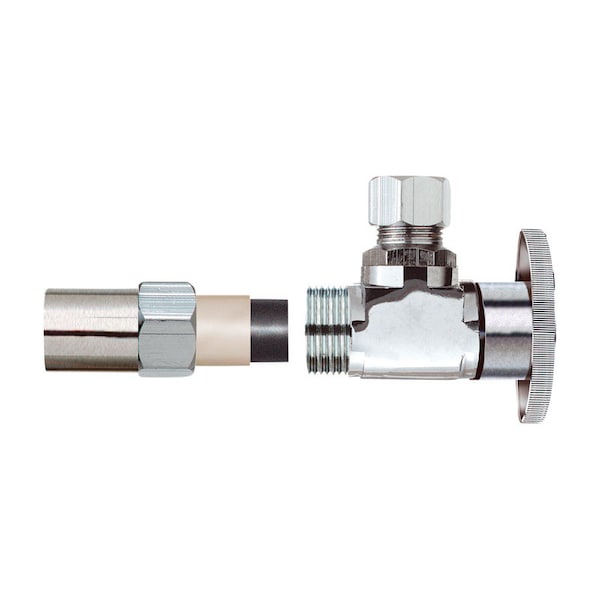 This Plumb Pak quarter turn angle transition valve comes with a chrome plated finish that doesn't wear off easily. It is tagged as lead-free. This valve features a 1/2 in. (nominal) CPVC connection and a 3/8 in. (OD) tube connection.