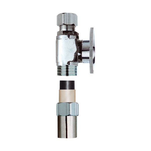 This Plumb Pak quarter turn straight transition valve comes with a chrome plated finish that doesn't wear off easily. It is tagged as lead-free to ensure safety. This valve features a 1/2 in. nominal CPVC connection and a 3/8 in. outlet dimension tube connection.