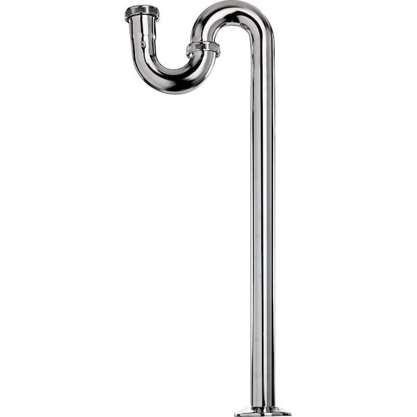 S-Trap with Flange, 1-1/4 in, Flange, Brass, Polished Chrome