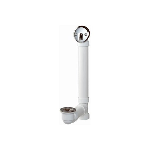 112, White, Trip Lever Closure Bath Drain, Polished Chrome Exposed Trim, White Schedule 40, Adustable From 14 To 16, Fits All Standard Tub Sizes