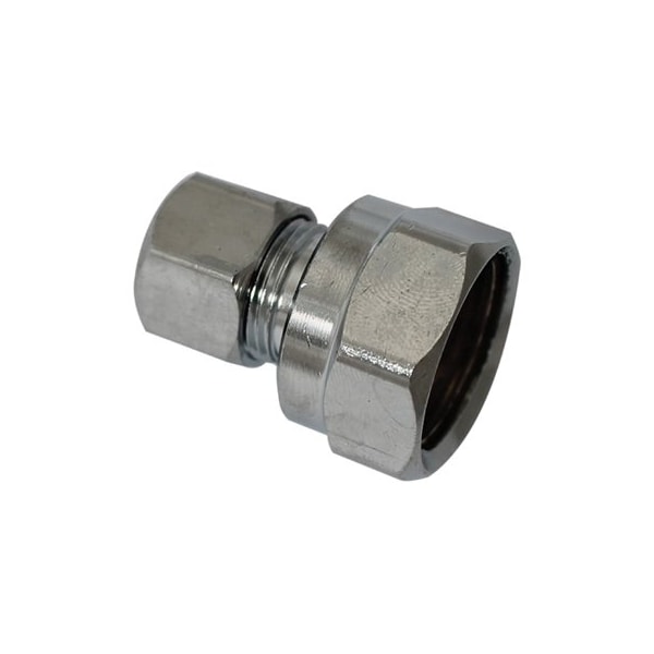 Straight Connector, Inlet Of 12 Female Threaded Pipe Outlet Of 38 OD, Chrome Plated Brass, Meets All Lead Free Requirements