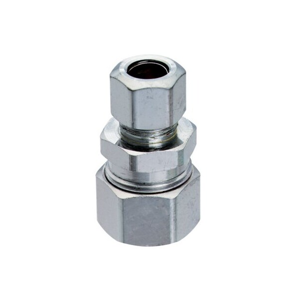 Straight Connector, Inlet Of 12 Copper Outlet Of 38 OD, Chrome Plated Brass, Meets All Lead Free Requirements