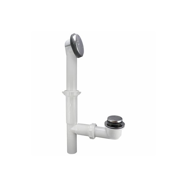 White, Plastic Tub Drain Assembly, Tip Toe Style, Adjustable 1416, Exposed Parts Chrome Plated Finish, Fits All Standard Tub Sizes, Boxed