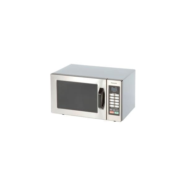 PANASONIC® COMMERCIAL MICROWAVE 1,000 WATT MICROWAVE WITH KEYPAD 0.8 CUBIC FOOT CAPACITY COMMERCIAL MICROWAVE OVEN IS IDEAL FOR COMMERCIAL KITCHEN ENVIRONMENTS THAT REQUIRE QUICK, EFFICIENT REHEATING OF FOOD. PANASONIC® COMMERCIAL MICROWAVE FITS ONE HALF-SIZE 6 TALL STEAM TABLE PAN WITH COVER. SEE-THROUGH OVEN DOOR FOR EASY VIEWING OF CONTENTS. EASY GRIP DOOR HANDLE OFFERS FAST AND DURABLE DOOR OPENING. 1000 WATT MICROWAVE FEATURES BOTTOM ENERGY FEED AND A STAINLESS STEEL FRONT. 0.8 CUBIC FOOT CAPACITY. NSF APPROVED. UL LISTED.
