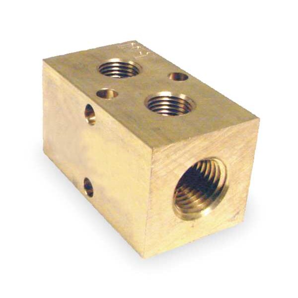 Manifold, Flow Direction Inline, For Fluid Type Air, Hydraulic Oil, Water, Inlet Connection Gender Female, Inlet Connection Size 3/8 in, Inlet Connection Type NPT, Manifold Material Brass, Manifold Material Finish Not Applicable, Manifold Material Grade Not Applicable, Maximum Operating Pressure 2,000 psi, Maximum Operating Temperature 250 Degrees F, Minimum Operating Temperature -65 Degrees F, Number of Inlets 2, Number of Mounting Holes 2, Number of Outlets 2, Outlet Connection Gender Female