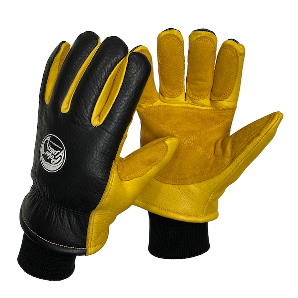 Cold Protection Gloves, Grain Deerskin Leather Palm, Yellow, M