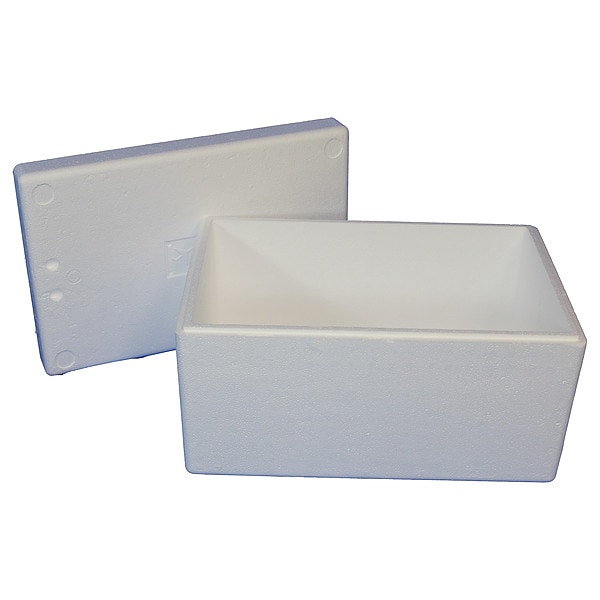 Insulated Shipping Container, Shipping Box Material Corrugate, Insert Material Styrofoam, Inside Length 18 1/2 in, Inside Width 11 1/2 in, Inside Height 9 3/4 in, Inside LxWxH 18-1/2x11-1/2x9-3/4 in, Insert Wall Thickness 0.75 in, Outside Length 21 1/8 in, Outside Width 14 1/8 in, Color White
