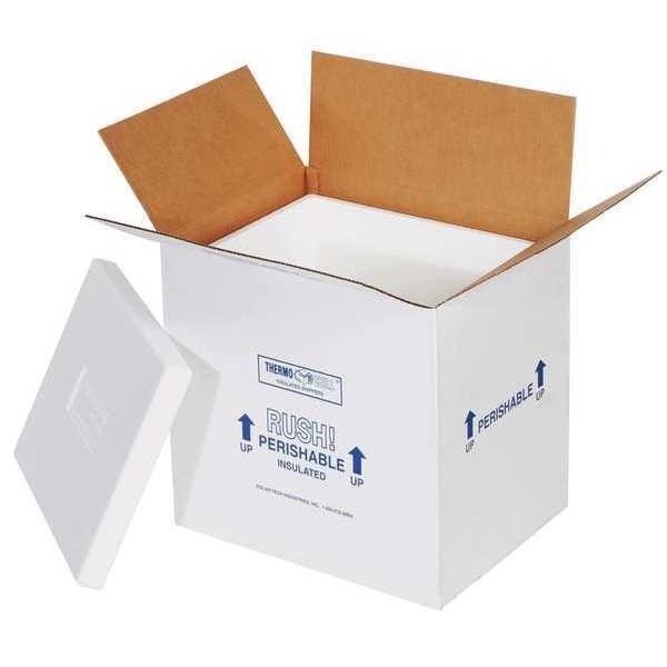 Insulated Shipping Container, Insert Material Styrofoam, Inside Length 8 in, Inside Width 6 in, Inside Height 7 in, Inside LxWxH 8x6x7 in, Insert Wall Thickness 1.50 in, Standards 32ECT, FDA, 21 CFR 177.1640, 21 CFR 178.3010, Color Clay White