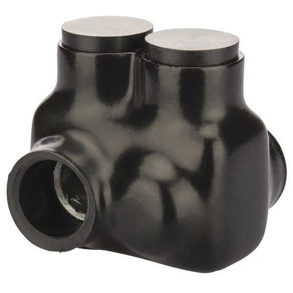 Insulated Multitap Connector, Body Material Aluminum, Color Black, Finish Plastisol, For Conductor Material Aluminum, Copper, For Stranded Copper Wire Size - Minimum 6 AWG, For Stranded Copper Wire Size - Maximum 3/0 AWG, Head Style Hex, Hex Size 1/4 in, Insulation Material Plastisol, Maximum Operating Temperature 194 Degrees F, Maximum Voltage 600 V, Number of Ports 2, RoHS Compliant Yes, Standards cULus, UL 486B, Compatible with Product Type Copper and Aluminum Cables
