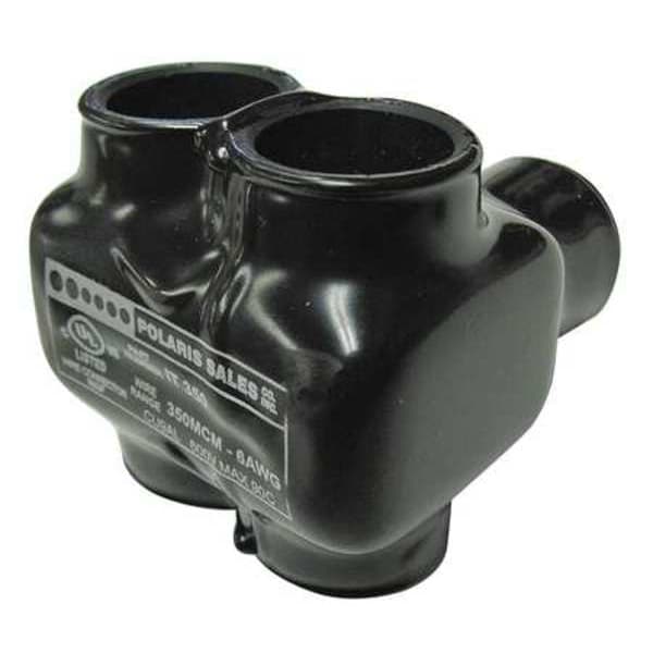Multitap Connector, Body Material Aluminum, Color Black, Finish Plastisol, For Conductor Material Aluminum, Copper, For Stranded Copper Wire Size - Minimum 6 AWG, For Stranded Copper Wire Size - Maximum 350 kcmil, Head Style Hex, Hex Size 5/16 in, Insulation Material Plastisol, Maximum Operating Temperature 194 Degrees F, Maximum Voltage 600 V, Number of Ports 2, UL 94 Flammability Rating Not Applicable, RoHS Compliant Yes, Standards cULus, UL 486B