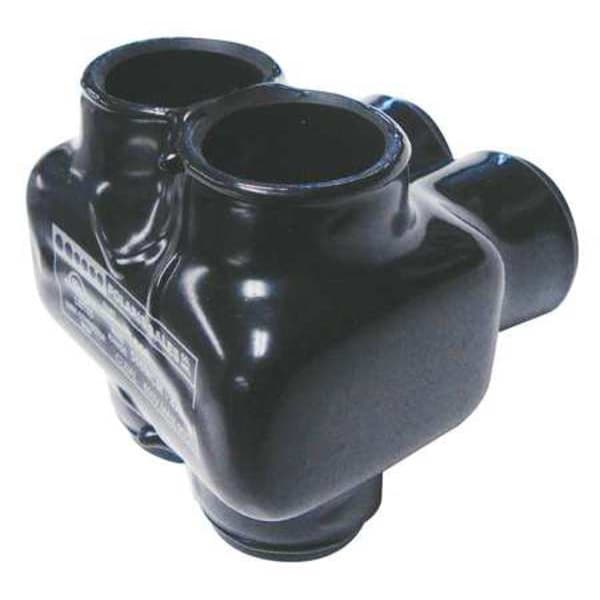 Multitap Connector, Body Material Aluminum, Color Black, Finish Plastisol, For Conductor Material Aluminum, Copper, For Stranded Copper Wire Size - Minimum 4 AWG, For Stranded Copper Wire Size - Maximum 500 kcmil, Head Style Hex, Hex Size 5/16 in, Insulation Material Plastisol, Maximum Operating Temperature 194 Degrees F, Maximum Voltage 600 V, Number of Ports 2, UL 94 Flammability Rating Not Applicable, RoHS Compliant Yes, Standards cULus, UL 486B