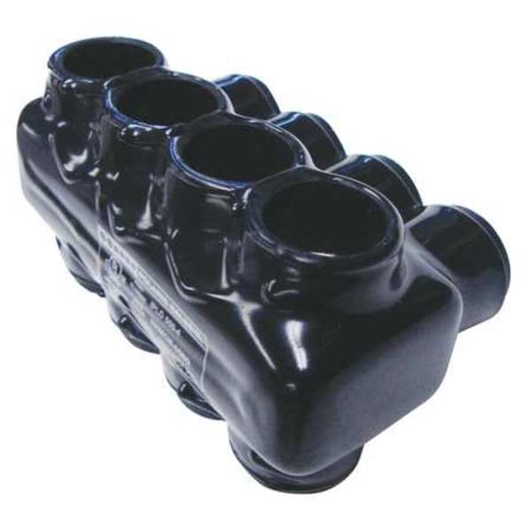 Multitap Connector, Body Material Aluminum, Color Black, Finish Plastisol, For Conductor Material Aluminum, Copper, For Stranded Copper Wire Size - Minimum 4 AWG, For Stranded Copper Wire Size - Maximum 500 kcmil, Head Style Hex, Hex Size 5/16 in, Insulation Material Plastisol, Maximum Operating Temperature 194 Degrees F, Maximum Voltage 600 V, Number of Ports 4, UL 94 Flammability Rating Not Applicable, RoHS Compliant Yes, Standards cULus, UL 486A