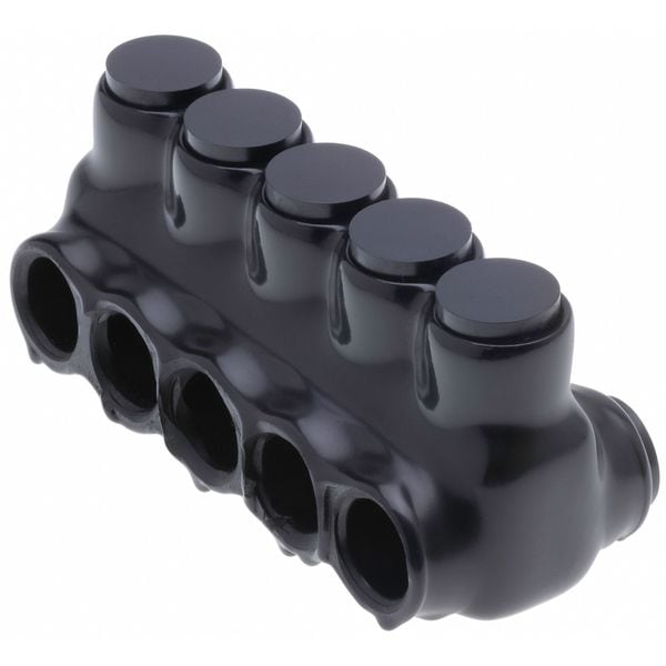 Multitap Connector, Body Material Aluminum, Color Black, Finish Plastisol, For Conductor Material Aluminum, Copper, For Stranded Copper Wire Size - Minimum 14 AWG, For Stranded Copper Wire Size - Maximum 2 AWG, Head Style Hex, Hex Size 5/32 in, Insulation Material Plastisol, Maximum Operating Temperature 194 Degrees F, Maximum Voltage 600 V, Number of Ports 5, UL 94 Flammability Rating Not Applicable, RoHS Compliant Yes, Standards UL 746C 750 Degrees C Glow Wire, UL Listed 486A/B Wire Connector