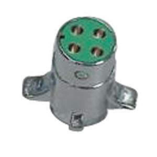 Features 4-Way Plug Industrys most popular 4-Way connector. Polarized chrome plated metal housing and spring loaded cover. High impact green cycolac insulators and split brass contacts. Mounting holes 1.75 in. on centers. Item Weight - 0.1100