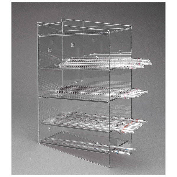 Item Serological Pipette Holder, Mounting Type Countertop, Number of Compartments 4, Autoclavable No, Material PETG, Clear, Height 15 29/32 in, Length 11 in, Width 8 13/64 in, For Use With Pipettes, Includes 4 Pocket, Countertop, Lab Rack Capacity Holds 4 Types of Serological Pipettes