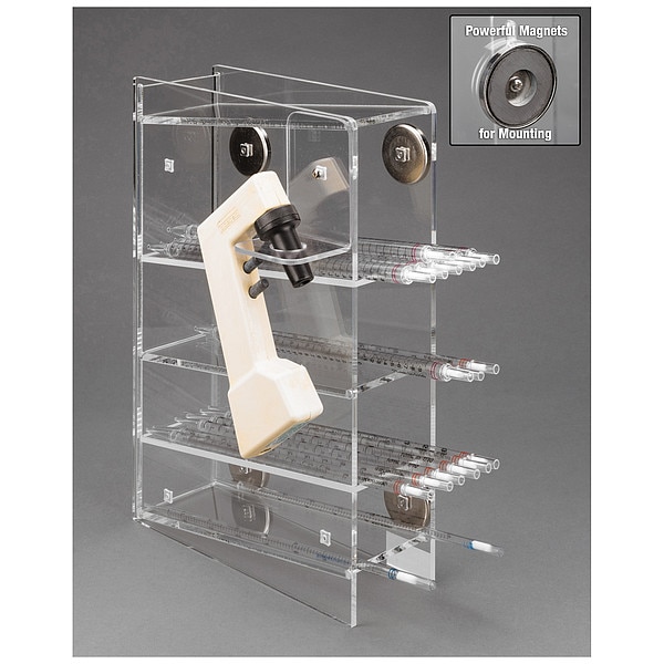 Item Serological Pipette Holder, Mounting Type Magnets, Number of Compartments 4, Autoclavable No, Material Acrylic, Clear, Height 16 in, Length 11 in, Width 4 in, For Use With Pipettes, Includes Powerful Magnet Mount, Pipette Controller Bracket, Lab Rack Capacity Holds 4 Types of Serological Pipettes and 1 Pipette Aid