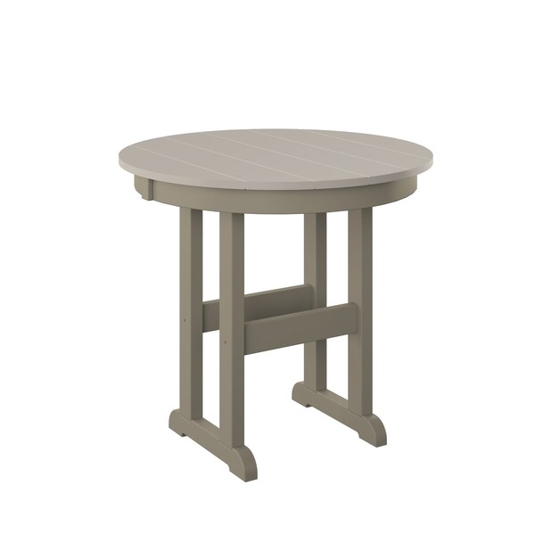 POLYBIRD 33in ROUND TABLE. COLOR SAND TOP AND WEATHERWOOD BASE. HIGH QUALITY HDPE POLY LUMBER, 316 MARINE GRADE STAINLESS HARDWARE, FADE AND ROT RESISTANT, MAINTENANCE FREE!! BIFMA M&E STANDARDS FOR COMMERCIAL AND RESIDENTIAL USE! 100% END OF LIFE RECYCLABLE FOR A SUSTAINABLE FUTURE! TABLE: 33in W x 33in D x 30in H; Overall size: 33in W x 33inD x 30in H , SEATS 2 PEOPLE