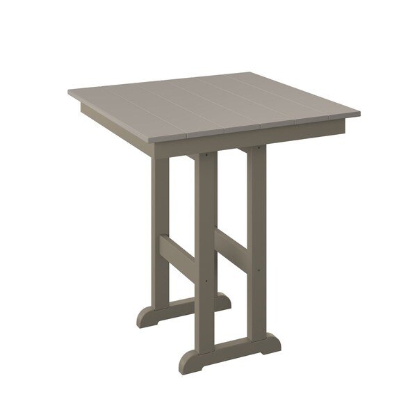 POLYBIRD 33in SQUARE TABLE "COUNTER HEIGHT" COLOR SAND TOP AND WEATHERWOOD BASE. HIGH QUALITY HDPE POLY LUMBER, 316 MARINE GRADE STAINLESS HARDWARE, FADE AND ROT RESISTANT, MAINTENANCE FREE!! BIFMA M&E STANDARDS FOR COMMERCIAL AND RESIDENTIAL USE! 100% END OF LIFE RECYCLABLE FOR A SUSTAINABLE FUTURE! TABLE: 33in W x 33in D x 36in H; Overall size: 33in W x 33inD x 36in H , SEATS 2 PEOPLE