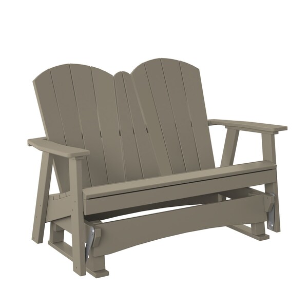POLYBIRD 4' GLIDER BENCH. COLOR WEATHERWOOD. HIGH QUALITY HDPE POLY LUMBER, 316 MARINE GRADE STAINLESS HARDWARE, FADE AND ROT RESISTANT, MAINTENANCE FREE!! BIFMA M&E STANDARDS FOR COMMERCIAL AND RESIDENTIAL USE! 100% END OF LIFE RECYCLABLE FOR A SUSTAINABLE FUTURE! GLIDER BENCH: 44in W x 18in D x 16in H; Overall size: 51in W x 30inD x 36in H ,