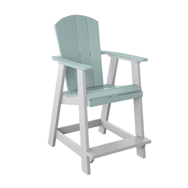 POLYBIRD BALCONY CHAIR "COUNTER HEIGHT". COLOR SAGE TOP AND WHITE BASE. HIGH QUALITY HDPE POLY LUMBER, 316 MARINE GRADE STAINLESS HARDWARE, FADE AND ROT RESISTANT, MAINTENANCE FREE!! BIFMA M&E STANDARDS FOR COMMERCIAL AND RESIDENTIAL USE! 100% END OF LIFE RECYCLABLE FOR A SUSTAINABLE FUTURE! SEAT: 20in W x 19in D x 24in H; Overall size: 28in W x 35inD x 43in H .
