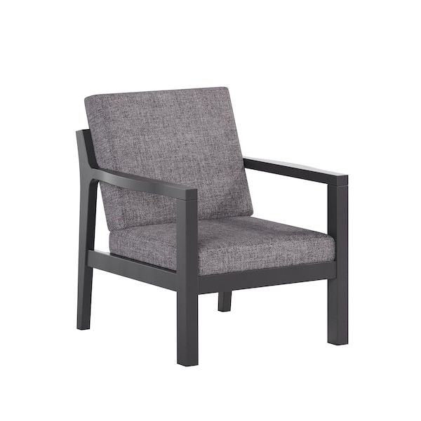 POLYBIRD BREEZE DEEP SEAT CHAIR. FRAME COLOR BLACK WITH SUNBRELLA CAST SLATE FABRIC. HIGH QUALITY HDPE POLY LUMBER, 316 MARINE GRADE STAINLESS HARDWARE, FADE AND ROT RESISTANT, MAINTENANCE FREE!! BIFMA M&E STANDARDS FOR COMMERCIAL AND RESIDENTIAL USE! 100% END OF LIFE RECYCLABLE FOR A SUSTAINABLE FUTURE! POLYBIRD BREEZE DEEP SEAT CHAIR, SEAT SIZE: 22in W x 23in D x 17in H; OVERALL SIZE : 24in W x 27in D x 30in H