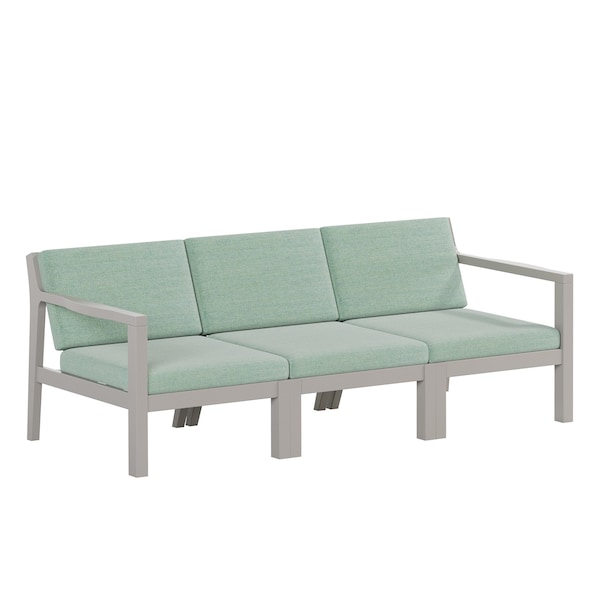 POLYBIRD BREEZE DEEP SEAT COUCH FRAME COLOR LIGHT GRAY WITH SUNBRELLA CAST SPA FABRIC. HIGH QUALITY HDPE POLY LUMBER, 316 MARINE GRADE STAINLESS HARDWARE, FADE AND ROT RESISTANT, MAINTENANCE FREE!! BIFMA M&E STANDARDS FOR COMMERCIAL AND RESIDENTIAL USE! 100% END OF LIFE RECYCLABLE FOR A SUSTAINABLE FUTURE! POLYBIRD BREEZE DEEP SEAT COUCH , SEATING SIZE: 66in W x 23in D x 17in H; OVERALL SIZE : 66in W x 28in D x 30in H. FABRICS FOR THE CUSHIONS ARE: SUNBRELLA CAST SPA