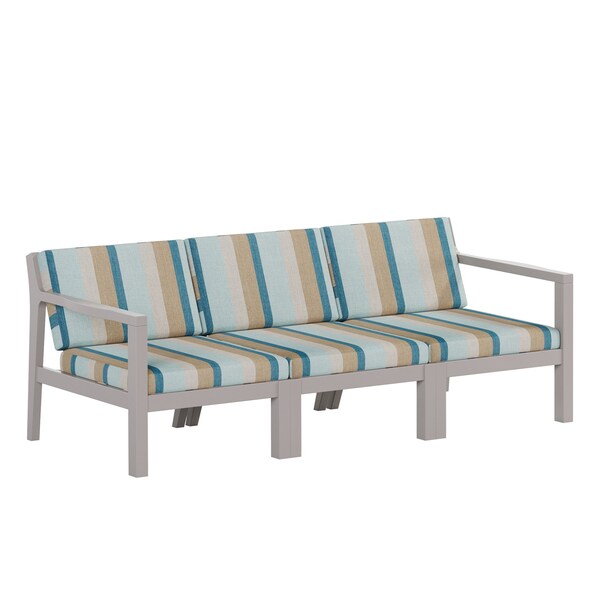 POLYBIRD BREEZE DEEP SEAT COUCH FRAME COLOR SAND WITH SUNBRELLA GATEWAY MIST FABRIC. HIGH QUALITY HDPE POLY LUMBER, 316 MARINE GRADE STAINLESS HARDWARE, FADE AND ROT RESISTANT, MAINTENANCE FREE!! BIFMA M&E STANDARDS FOR COMMERCIAL AND RESIDENTIAL USE! 100% END OF LIFE RECYCLABLE FOR A SUSTAINABLE FUTURE! POLYBIRD BREEZE DEEP SEAT COUCH , SEATING SIZE: 66in W x 23in D x 17in H; OVERALL SIZE : 66in W x 28in D x 30in H. FABRICS FOR THE CUSHIONS ARE: SUNBRELLA GATEWAY MIST