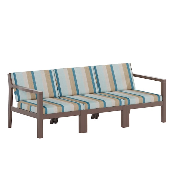 POLYBIRD BREEZE DEEP SEAT COUCH FRAME COLOR TUDOR BROWN WITH SUNBRELLA GATEWAY MIST FABRIC. HIGH QUALITY HDPE POLY LUMBER, 316 MARINE GRADE STAINLESS HARDWARE, FADE AND ROT RESISTANT, MAINTENANCE FREE!! BIFMA M&E STANDARDS FOR COMMERCIAL AND RESIDENTIAL USE! 100% END OF LIFE RECYCLABLE FOR A SUSTAINABLE FUTURE! POLYBIRD BREEZE DEEP SEAT COUCH , SEATING SIZE: 66in W x 23in D x 17in H; OVERALL SIZE : 66in W x 28in D x 30in H. FABRICS FOR THE CUSHIONS ARE: SUNBRELLA GATEWAY MIST