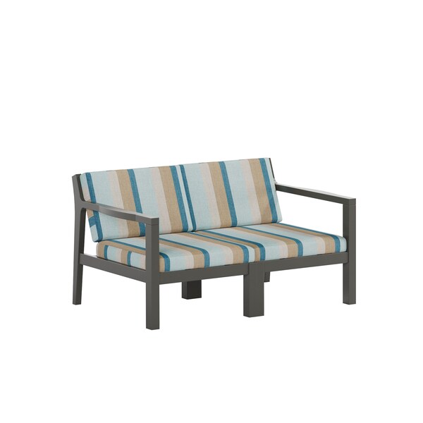 POLYBIRD BREEZE DEEP SEAT LOVESEAT FRAME COLOR COFFEE WITH SUNBRELLA GATEWAY MIST FABRIC. HIGH QUALITY HDPE POLY LUMBER, 316 MARINE GRADE STAINLESS HARDWARE, FADE AND ROT RESISTANT, MAINTENANCE FREE!! BIFMA M&E STANDARDS FOR COMMERCIAL AND RESIDENTIAL USE! 100% END OF LIFE RECYCLABLE FOR A SUSTAINABLE FUTURE! POLYBIRD BREEZE DEEP SEAT LOVESEAT , SEAT SIZE: 44in W x 23in D x 17in H; OVERALL SIZE : 44in W x 28in D x 30in H, FABRICS FOR THE CUSHIONS ARE: SUNBRELLA GATEWAY MIST